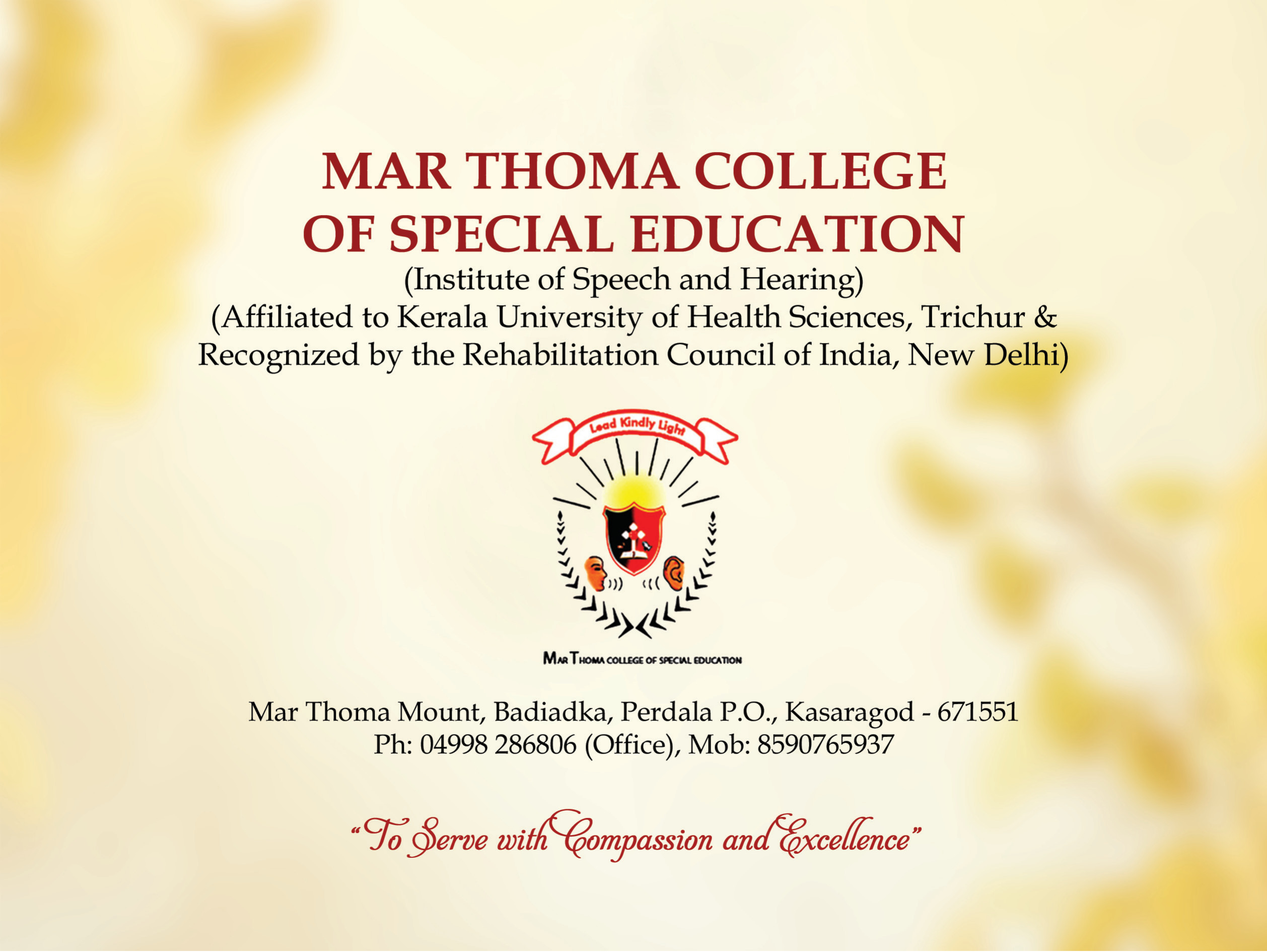 Mar Thoma College of Special EducationPlease read the Prospectus regarding the Admissions before filling the application form.